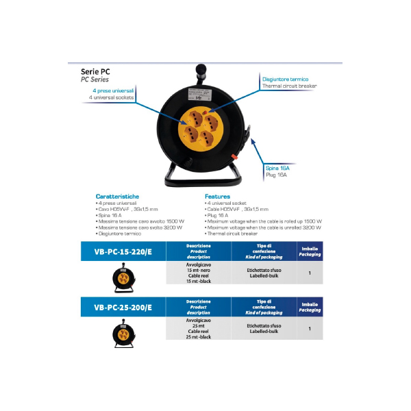 AVVOLGICAVO CIVILE 25 MT 4 PRESE UNIV. VB